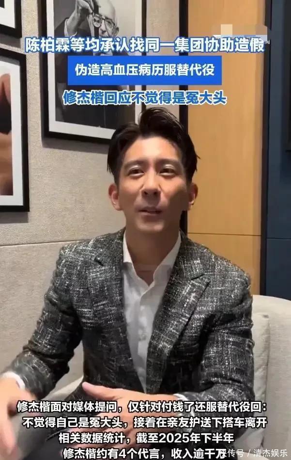 交保后面对媒体追问“是否觉得当冤大头”,修杰楷仅简短回应:“不觉得是冤大头”。这句回应引发舆论哗然——相较王大陆传闻花费百万元仍失败,修杰楷虽未完全逃兵,但15万元代价加上法规漏洞,仍让他大幅缩短了服役时间。