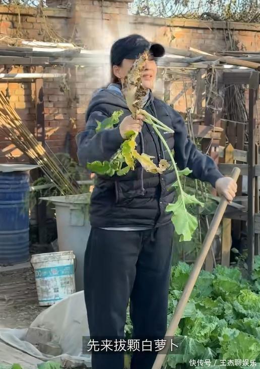 梅婷特别开心地晒出了公公婆婆亲手种的各类蔬菜,像大白菜、白萝卜、胡萝卜,还有大蒜、芋头啥的,全都有。